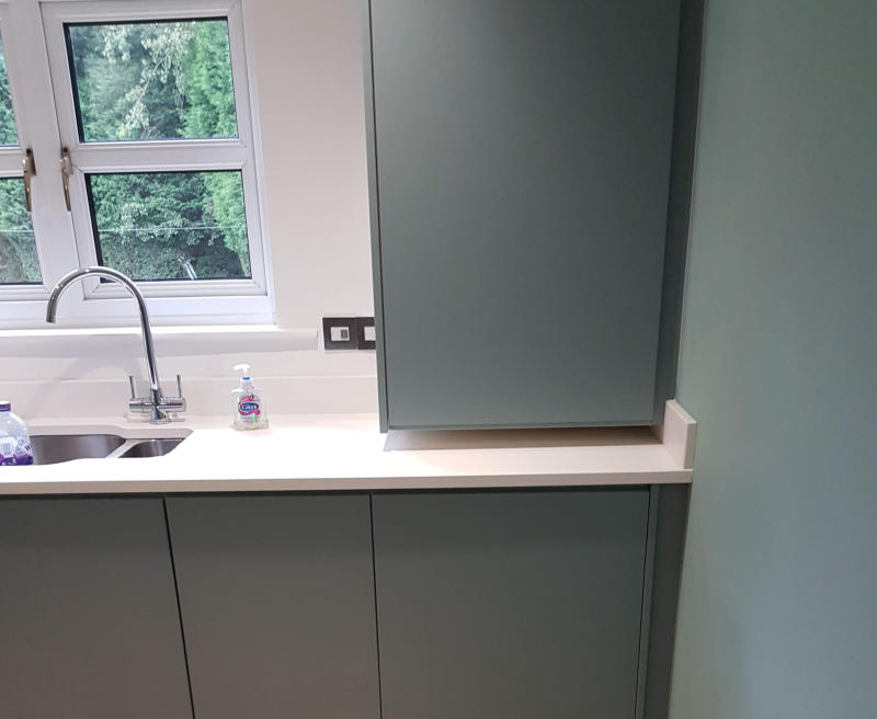 Fjord Green handleless kitchen Woodford