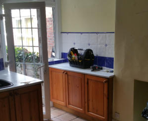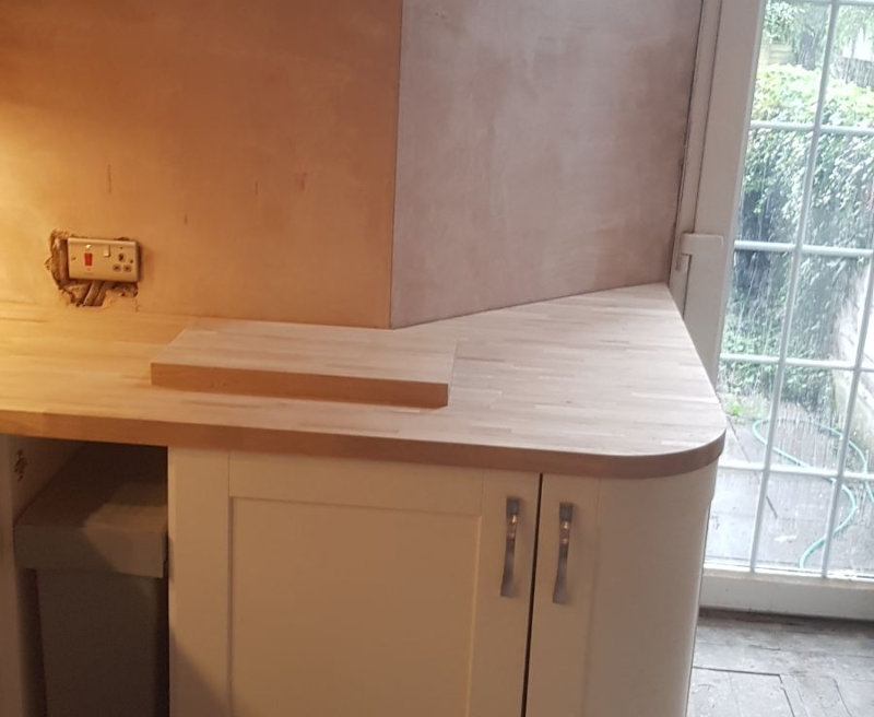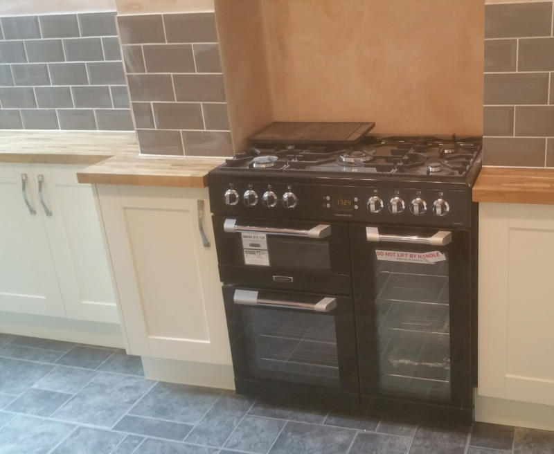 Shaker style kitchen and solid oak worktops Woodsmoor Stockport