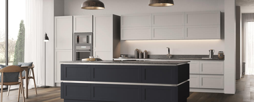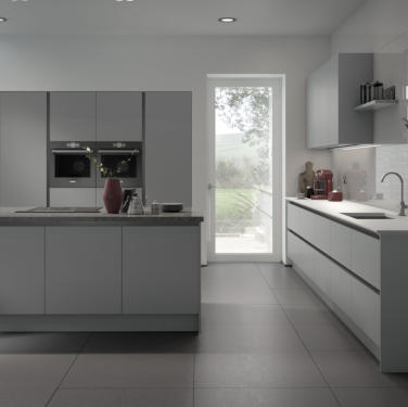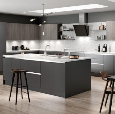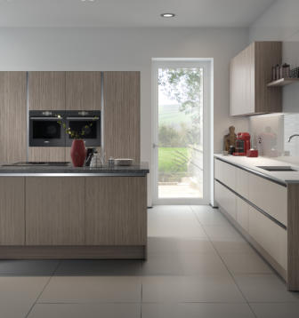 Match your choice of door and the Vero handleless rail system for a stunning contemporary kitchen.