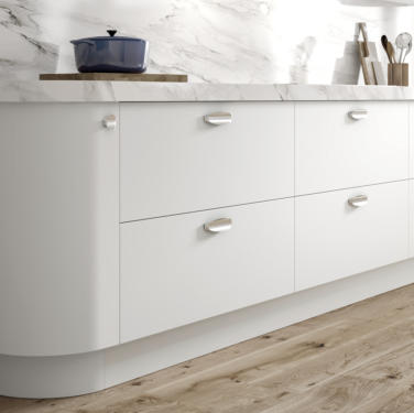 Vivo creates a beautiful modern and simplistic look with easy clean properties which can be personalised through handle choice.