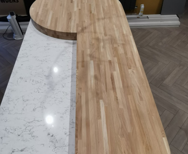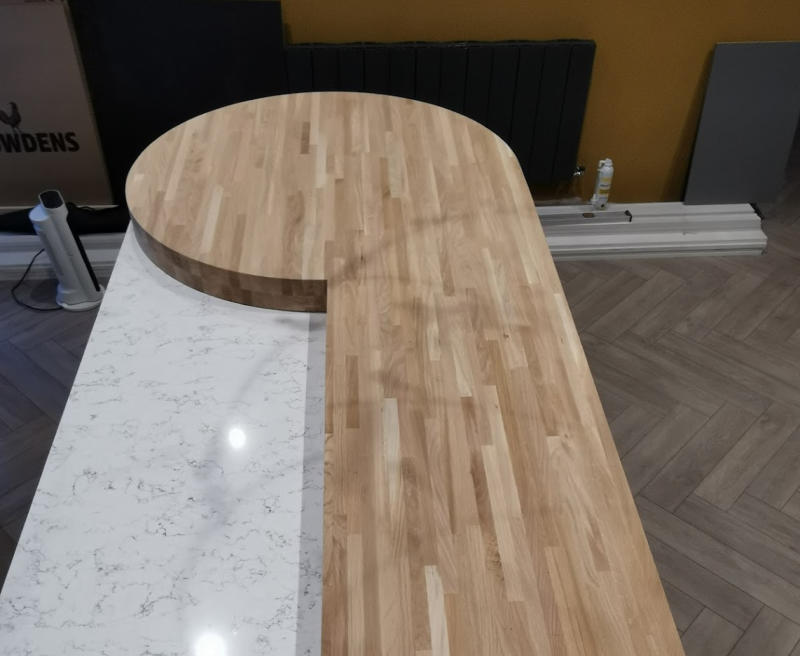 Anthracite handleless kitchen and solid oak worktops Chesterfield