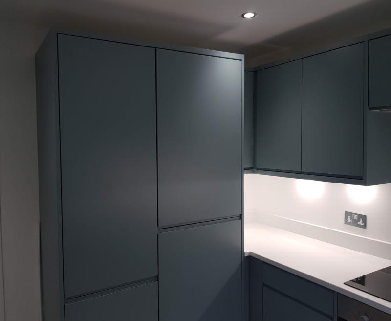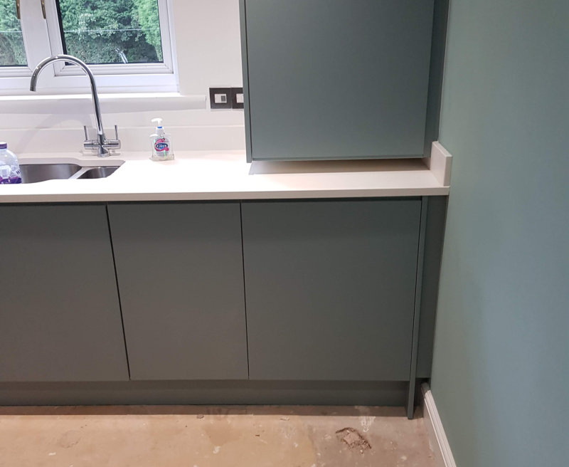 Fjord Green handleless kitchen Woodford