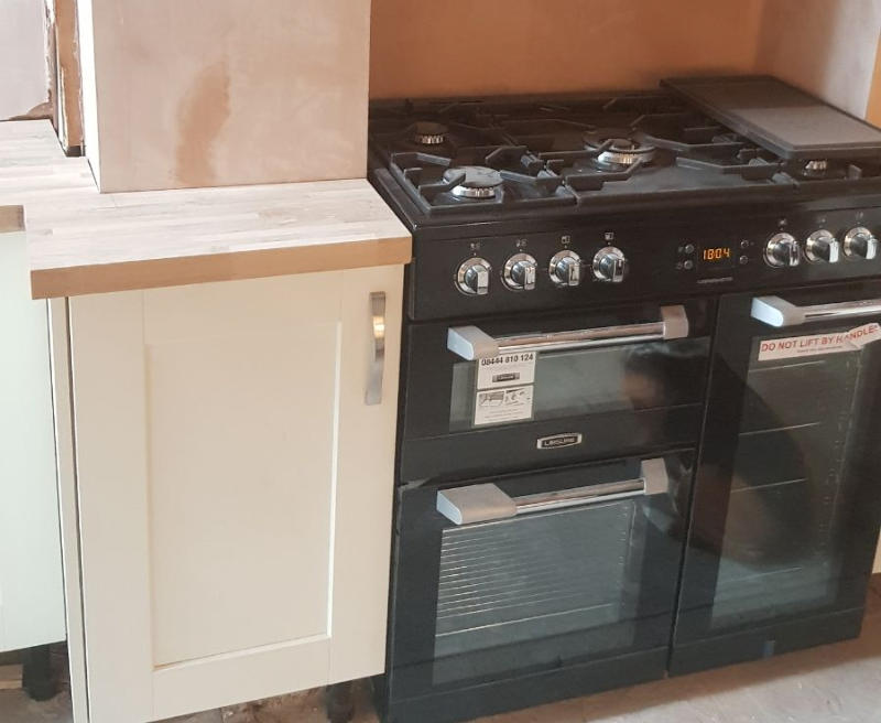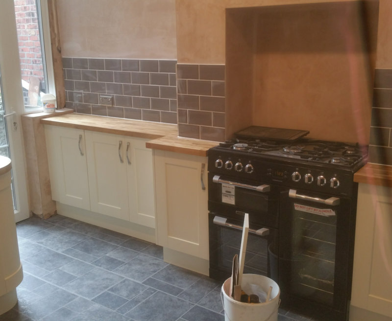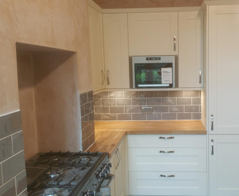 Shaker style kitchen and solid oak worktops Woodsmoor Stockport