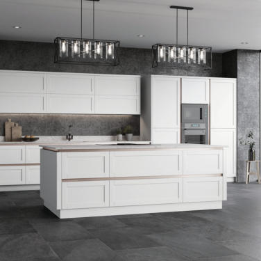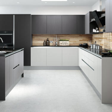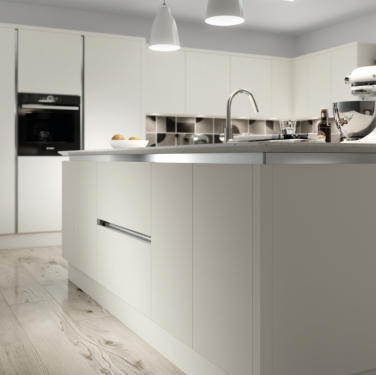 Match your choice of door and the Vero handleless rail system for a stunning contemporary kitchen.