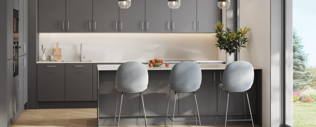 Vivo creates a beautiful modern and simplistic look with easy clean properties which can be personalised through handle choice.